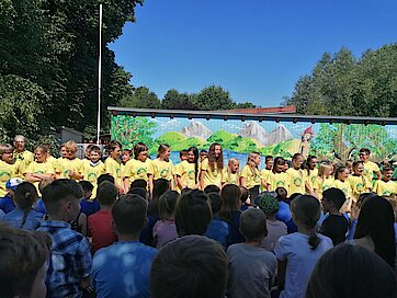 Ein großes Dankeschön geht an den Förderverein für die Ausstattung mit den Schul-T-Shirts, die, verziert mit vielen Unterschriften, für alle eine wundervolle Erinnerung darstellen.