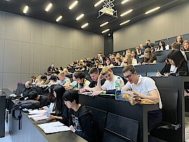 Am Mittwoch fand Vorlesungsbetrieb statt. Gewöhnungsbedürftig für viele: das Sitzen in den harten Reihen des Vorlesungssaales. So unterschiedlich die Fachbereiche, so unterschiedlich erlebten die Schüler die Art und Weise der Vorlesung. Eine vollständig in Englisch gehaltene Vorlesung zu englischer Literatur strengte an, während die sehr interaktiv geführte Veranstaltung vom Maschinenbau kaum an eine „Vorlesung“ erinnerte.