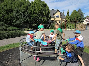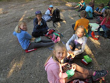 Nach einer knapp dreistündigen Wanderung, inklusive Stärkung zum Frühstück, erreichten wir den wunderschön angelegten Spielplatz in Hermsdorf.