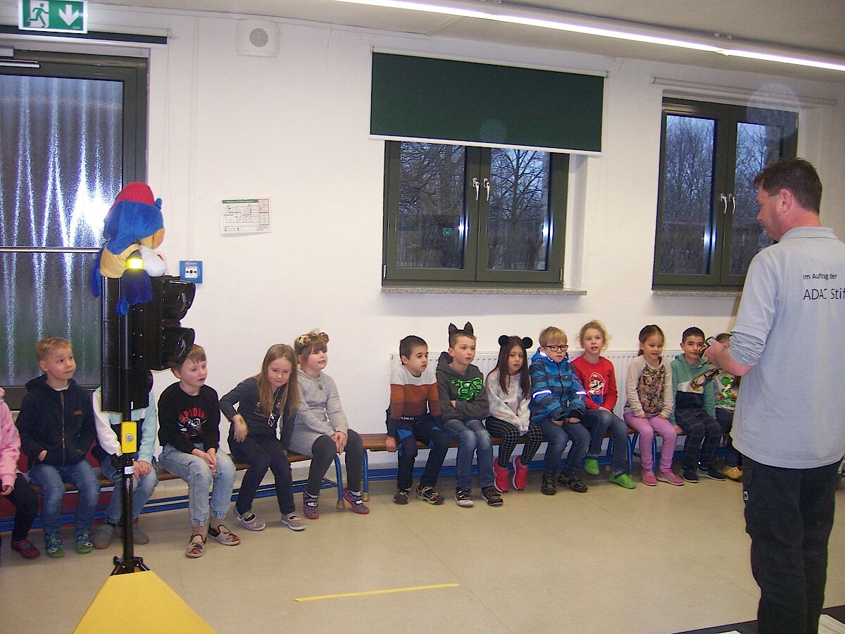 Am 25. Januar besuchte die Kinder der Klassen 1a und 1b Adacus vom ADAC. Adacus ist ein blauer Rabe, der das Team vom ADAC unterstützt, wenn sie an Schulen oder andere Kindereinrichtungen fahren, um mit den Kindern über Straßenverkehr zu reden und auch das richtige Überqueren der Straße trainieren.