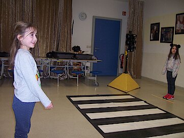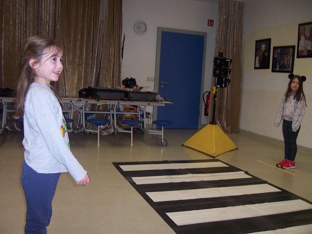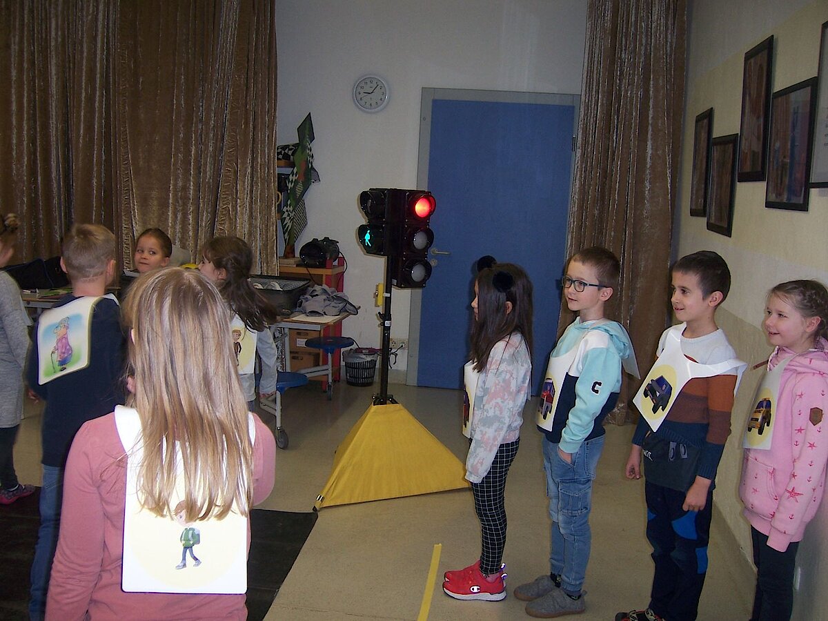 Am meisten Freude hatten die Kinder bei den praktischen Übungen an einer nachgestellten Straßenkreuzung. Jeder durfte die Straße aus unterschiedlichen Perspektiven kennenlernen, entweder als Fußgänger oder als Fahrzeug.