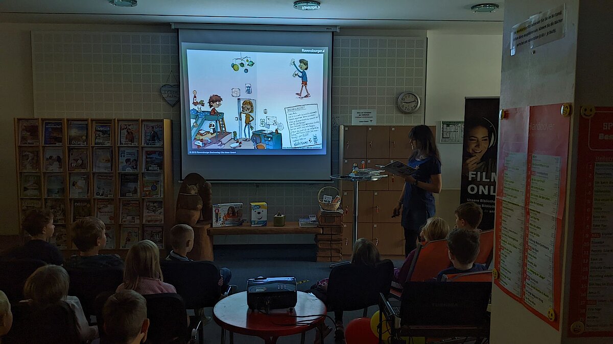 Am Wandertag war die Aufregung groß. Rucksack, Brotbüchse, Regenschirm, Regenjacke, Wanderschuhe … an so vieles ist zu denken. Am frühen Vormittag wanderten wir los. Unser erstes Ziel war die Stadtbibliothek Lichtenstein. Sehr gern folgten wir der Einladung zum Bilderbuchkino. Der Geschichte von Mats und seiner „Mission Schulstart“, die Frau Hartmann wieder sehr lebendig, kurzweilig und ansprechend erzählte, haben die Kinder aufmerksam gelauscht, viel gelacht und vielleicht auch an ihren eigenen Schulstart gedacht. Danke an dieser Stelle für die schöne Stunde und den Gutschein im Wert einer Jahresgebühr für die Nutzung der Stadtbibliothek, den jedes Kind erhalten hat.