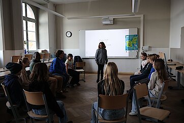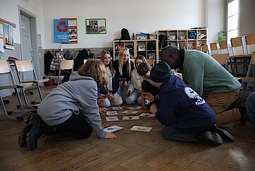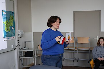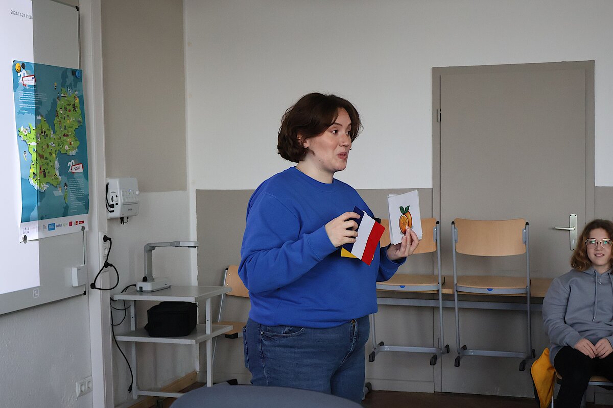 Am Mittwoch, den 27. November, sind wir in das „FranceMobil“ gegangen, um dort mit einer jungen Französin namens Pauline ein bisschen Französisch zu üben. Wir haben am Anfang ein Würfelspiel gespielt und uns mit verschiedenen Zahlen vorgestellt. Danach haben wir einen Stuhlkreis gebildet und immer, wenn die anderen Kinder „Salut“, „Au revoir“ oder „Bonjour“ gesagt haben, musste man sich einen neuen Platz suchen. Das hat Spaß gemacht! Dann haben wir Lieder angehört, in denen Wörter vorkamen, die im Deutschen und Französischen sehr ähnlich sind (z.B. le chocolat – die Schokolade, la radio – das Radio, une orange – eine Orange). Dazu hat Pauline Karten, z.B. mit Bildern von Schokolade, einem Radio und einer Orange auf den Boden in die Mitte des Kreises gelegt und wir mussten eine Hand auf die Karte mit dem Bild legen, das gerade im Lied vorkam. Am Ende, als es vorbei war, wollten alle am liebsten noch länger bleiben. Au revoir!