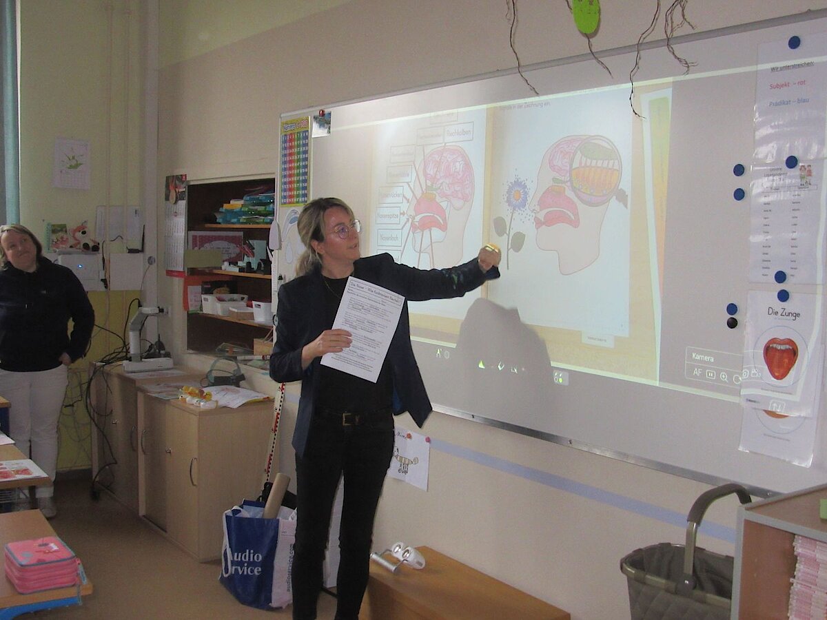 Besonders spannend waren verschiedene praktische Beispiele. So wurden beispielsweise das Innenohr fotografiert, ein Schwindeltest durchgeführt und der Geruchssinn getestet. Viele aufkommende Fragen der Schülerinnen und Schüler wurden kindgerecht und geduldig beantwortet.