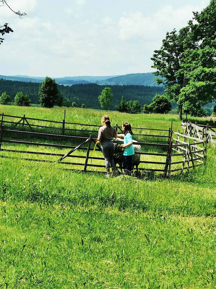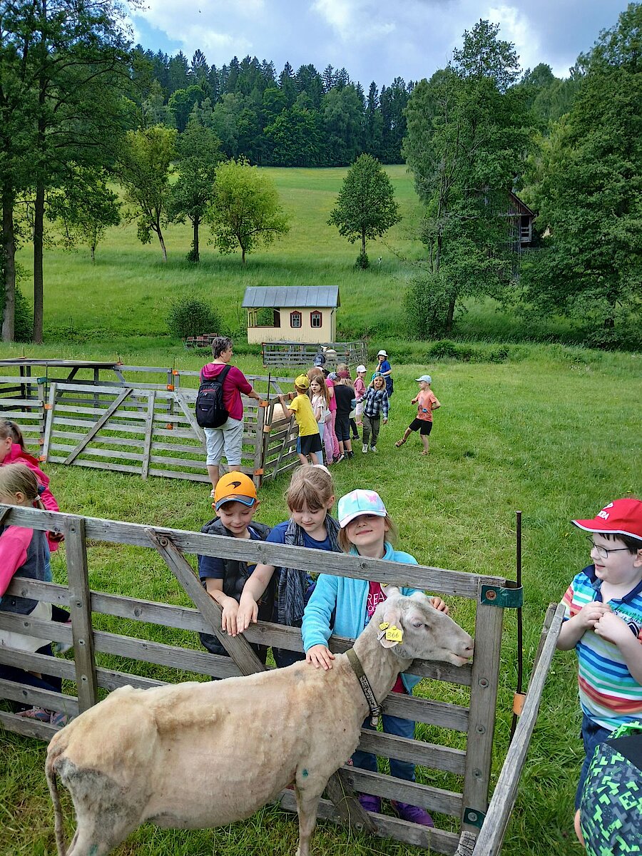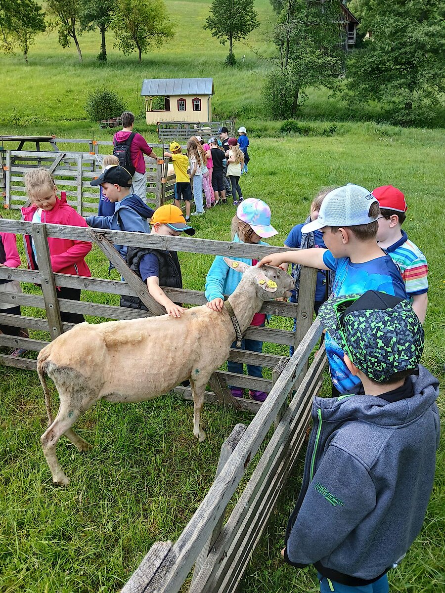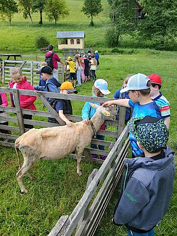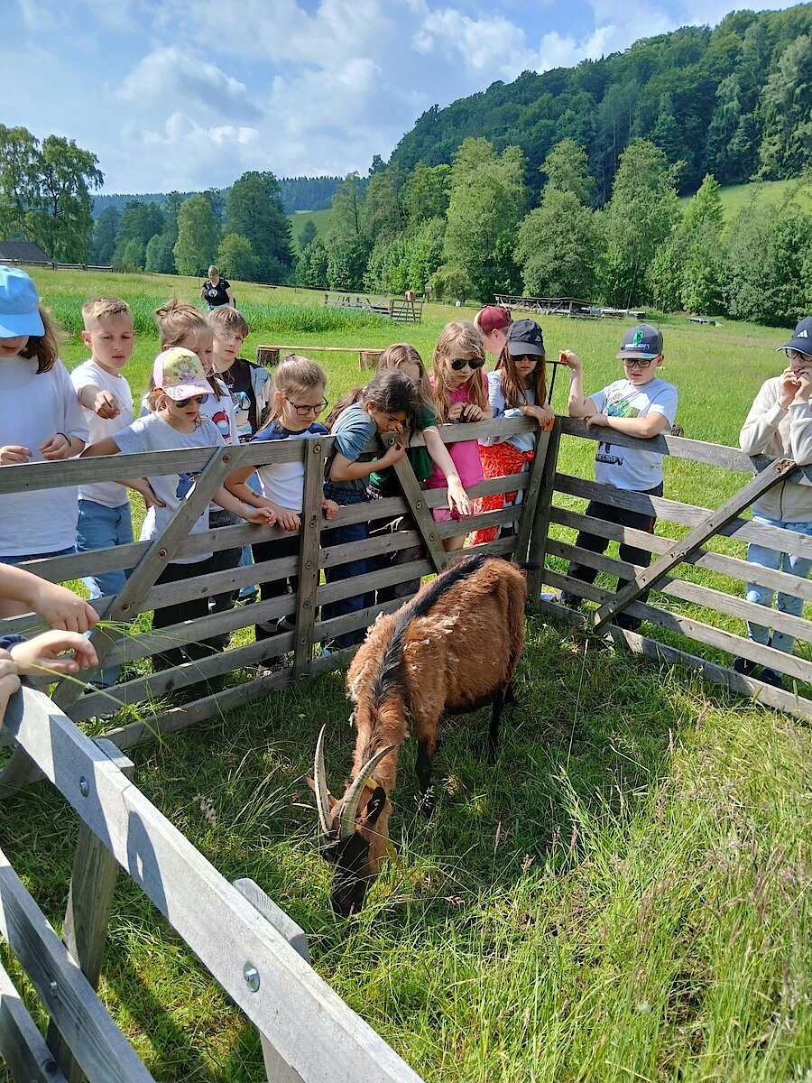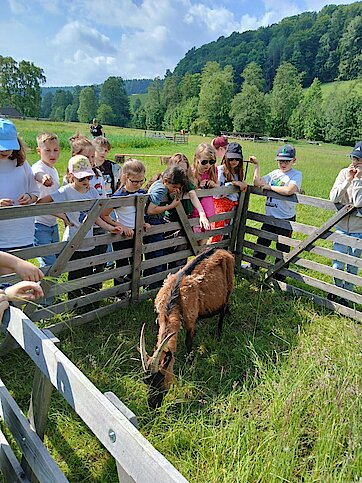 Auf den Wiesen und in den Ställen erwarteten die Kinder Ziegen, Schafe, Hasen und ein Pferd Namens Britta. Diese durften sogar gestreichelt und gefüttert werden.