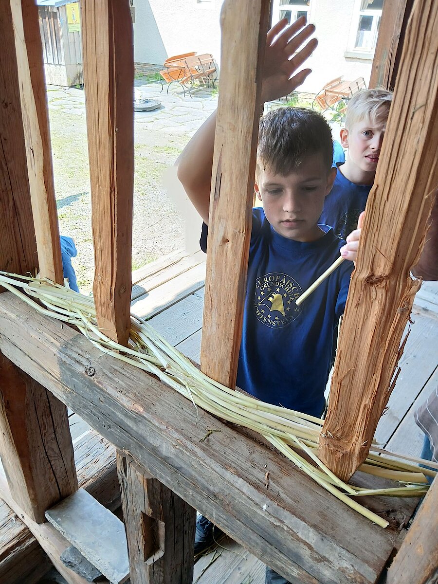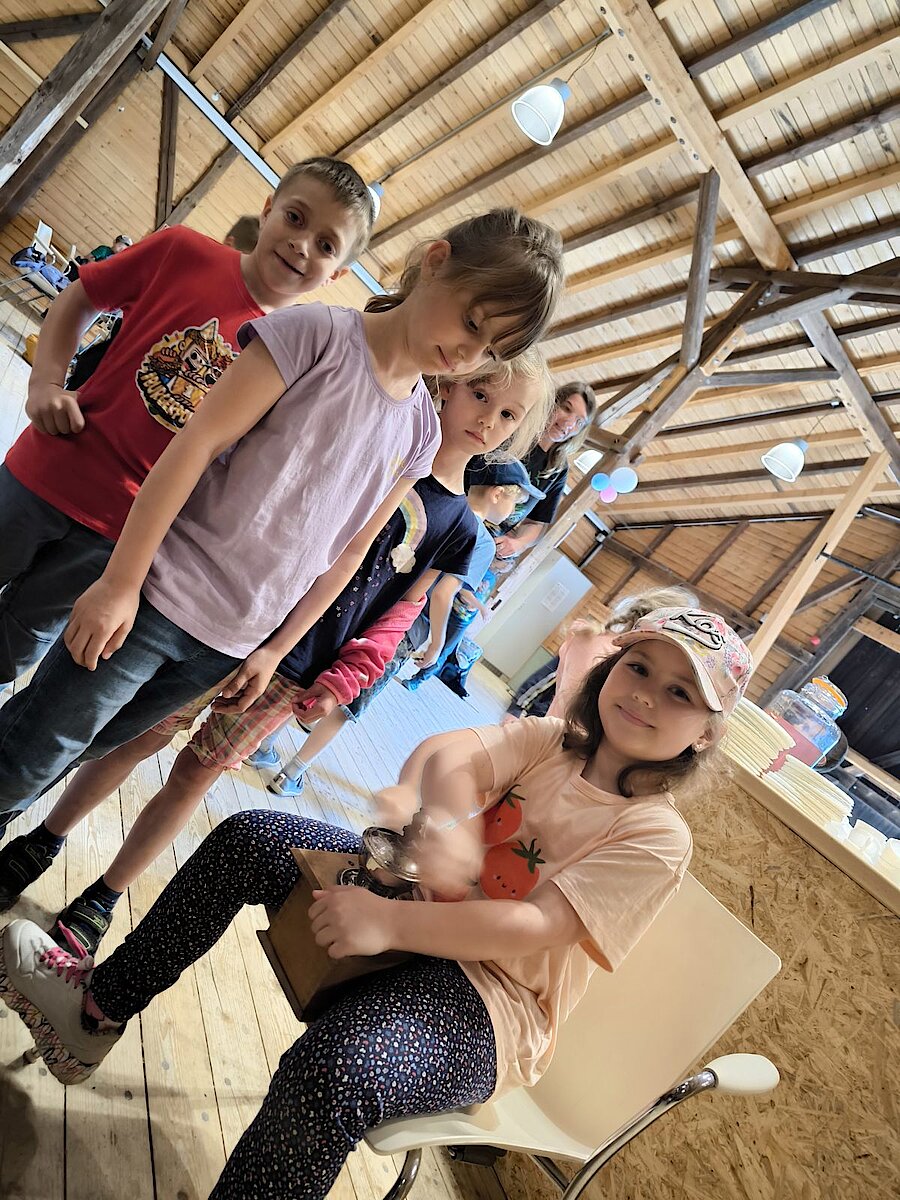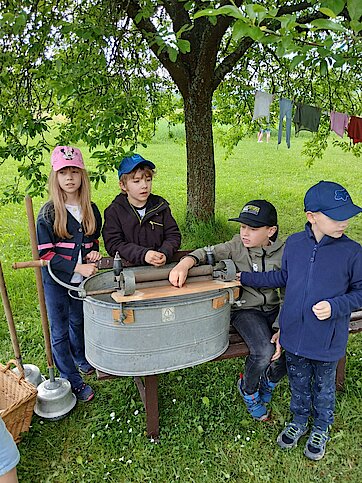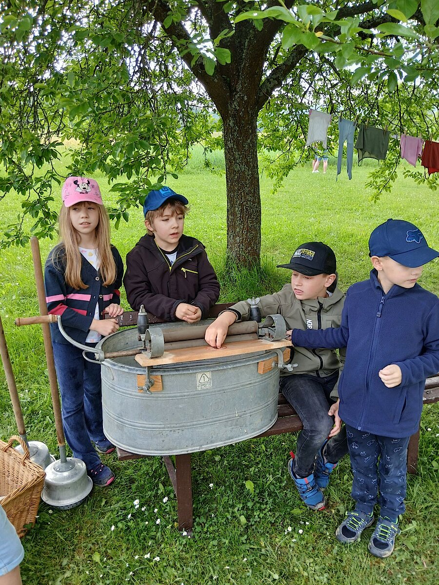 Nach einer Frühstücksstärkung erhielten die Kinder in verschiedenen Angeboten viele Einblicke in die Lebensweise der Menschen vor rund 150 Jahren und durften selbst dabei tätig werden.