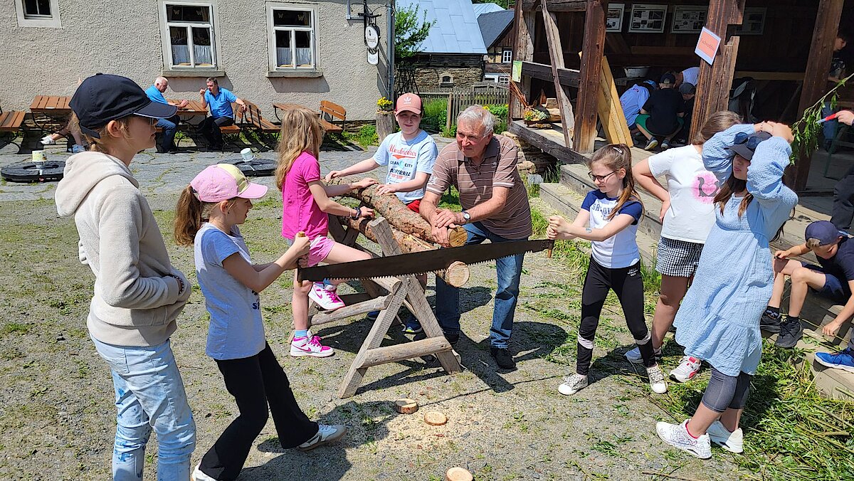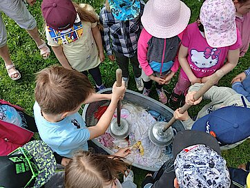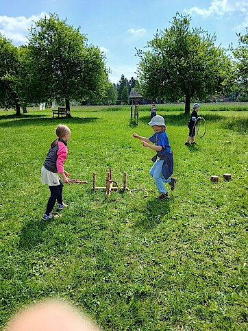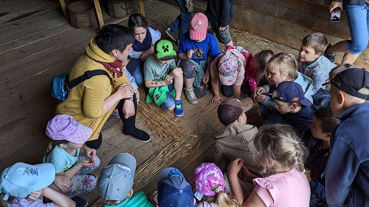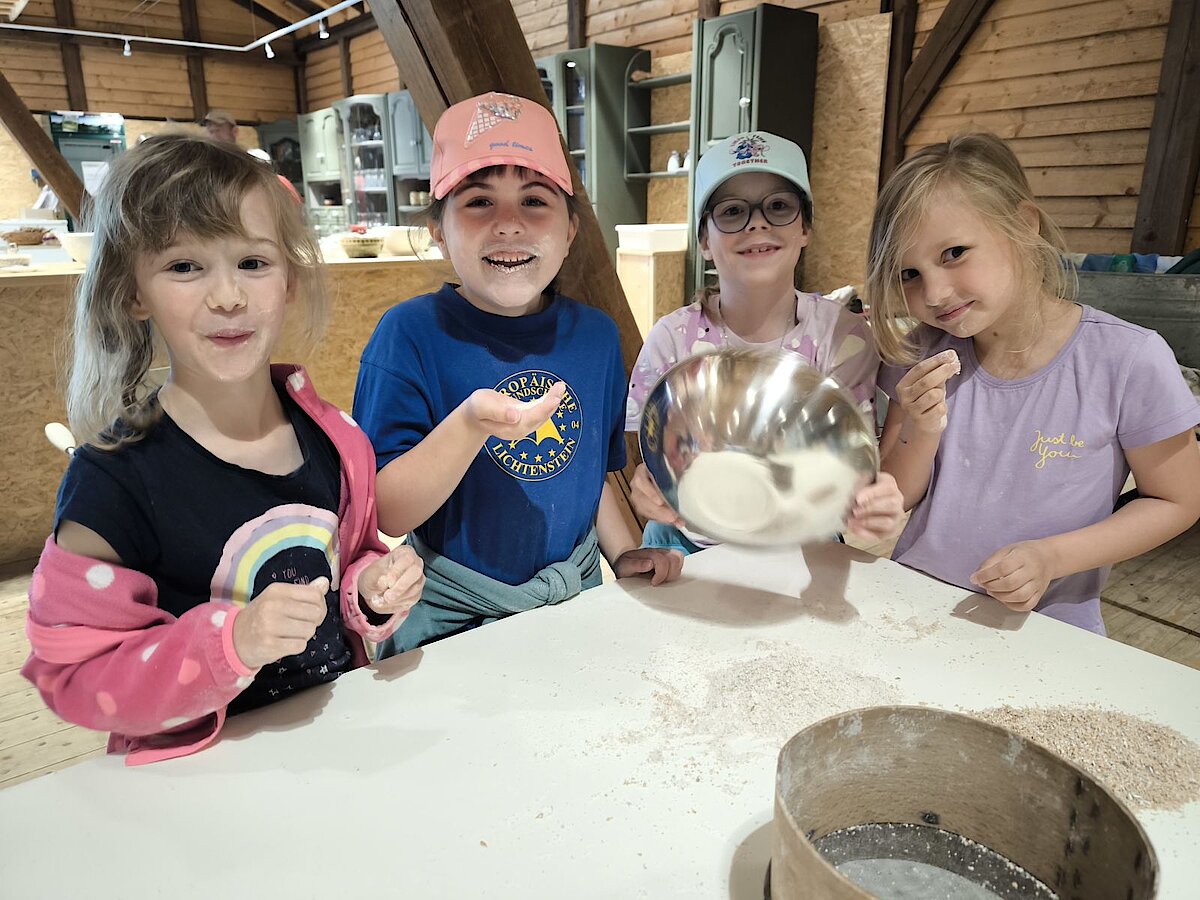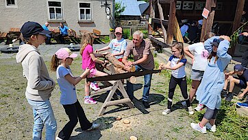 Nach einer Frühstücksstärkung erhielten die Kinder in verschiedenen Angeboten viele Einblicke in die Lebensweise der Menschen vor rund 150 Jahren und durften selbst dabei tätig werden.