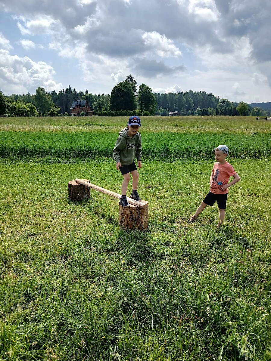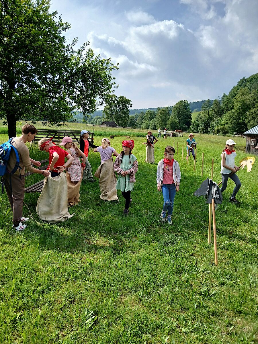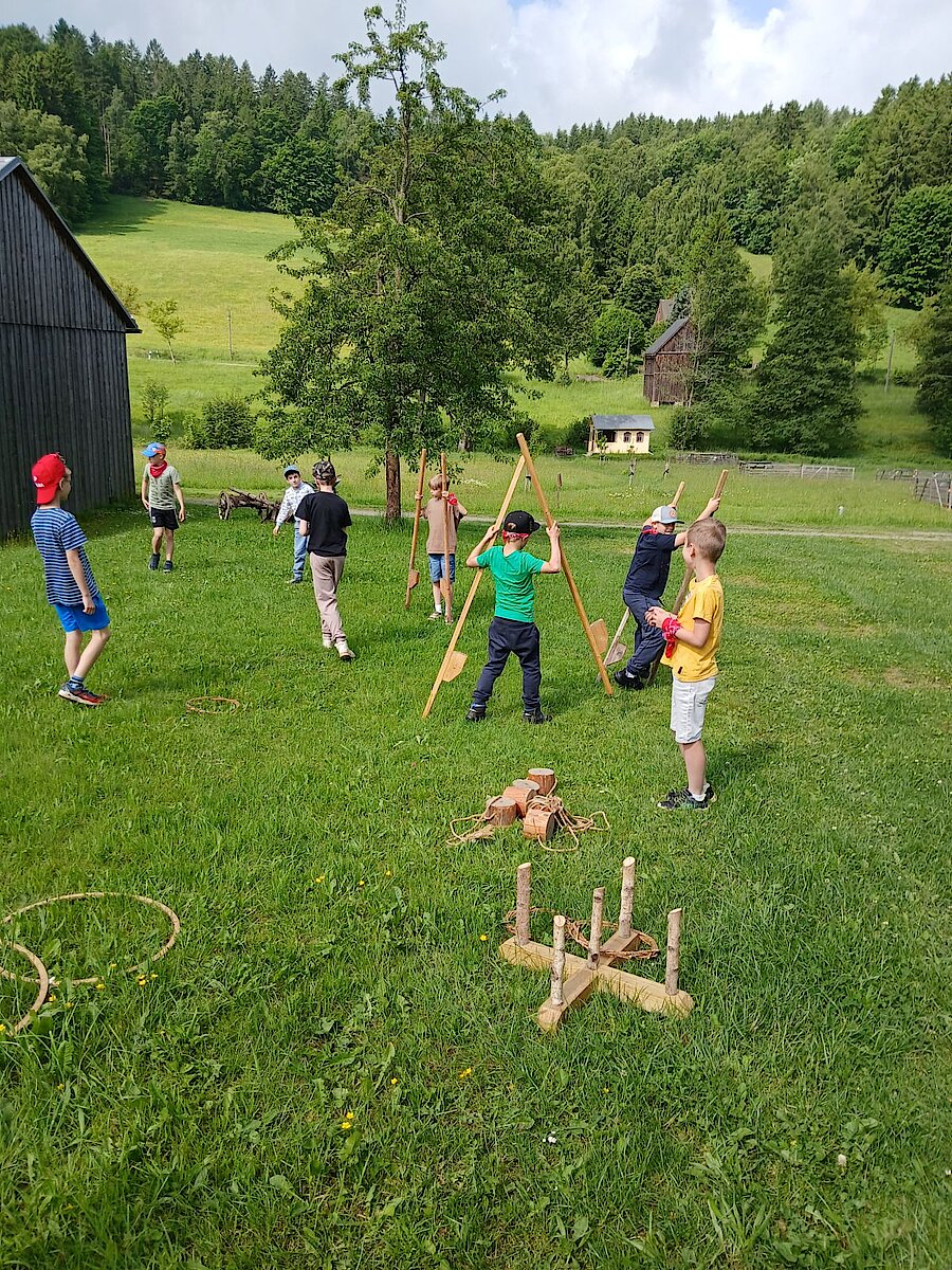 Ein leckeres Buffet erwartete uns um die Mittagszeit, und in der freien Zeit erkundeten wir die nähere Umgebung oder hatte Freude an alten Spielen, wie zum Beispiel Sackhüpfen, Stelzenlaufen, Steckenpferden, Ringe werfen und Balancieren.