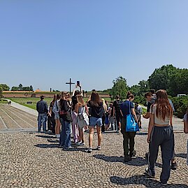Der nächste Tag wurde dann ganz und gar der Situation direkt nach dem Ende des Zweiten Weltkrieges gewidmet. Das Hauptthema war das Vertreiben der Sudetendeutschen und die tragischen Ereignisse, zu denen es in Postoloprty im Zusammenhang damit kam und die als das Postelberger Massaker bekannt sind. Gemeinsam besuchten die Schülerinnen und Schüler wichtige Orte, die mit den Ereignissen zusammenhängen. Zum Schluss zündeten sie Kerzen zum Gedenken der Opfer des Massakers an der Gedenktafel am Postelberger Friedhof an.