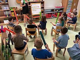 Bei den Eurozwergen wird nicht nur gesungen und getanzt – es wird auch musiziert! Und das auf eine ganz besondere, bunte Art: mit Boomwhackers!