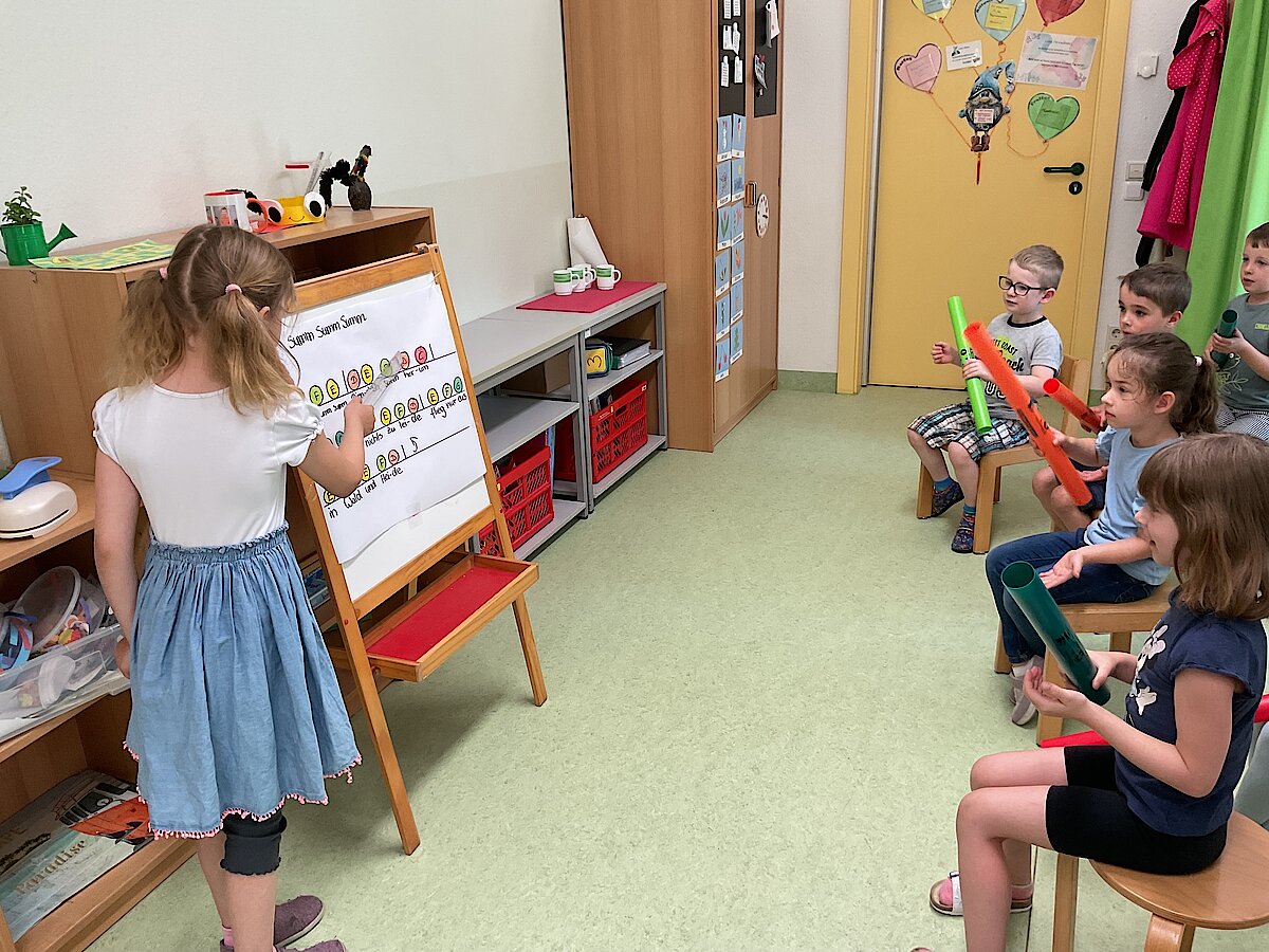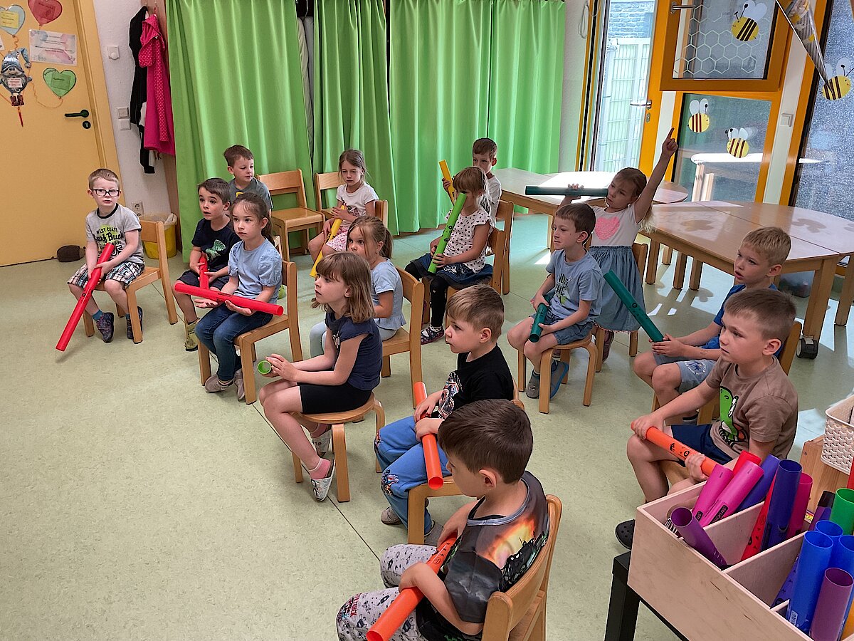 Die farbenfrohen Klangröhren bringen Kinderaugen zum Leuchten und Ohren zum Staunen. Jede Röhre klingt anders – je nach Länge und Farbe entsteht ein eigener Ton. Beim gemeinsamen Spielen entdecken die Kinder spielerisch Töne, Rhythmen und erste musikalische Zusammenhänge. Mal wird ein einfacher Beat geklopft, mal entsteht eine kleine Melodie – und manchmal wird einfach nur wild ausprobiert, gelacht und gestaunt.