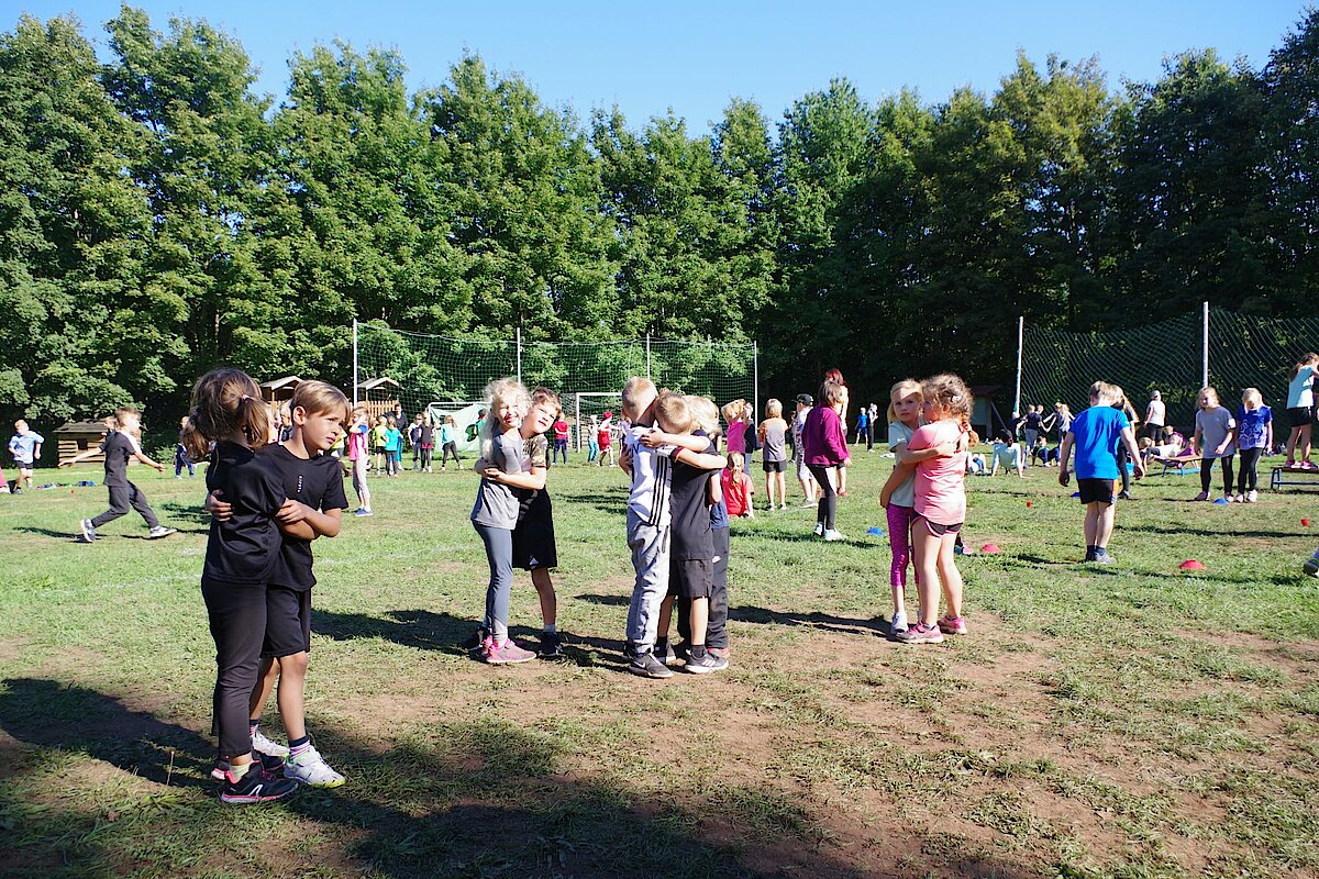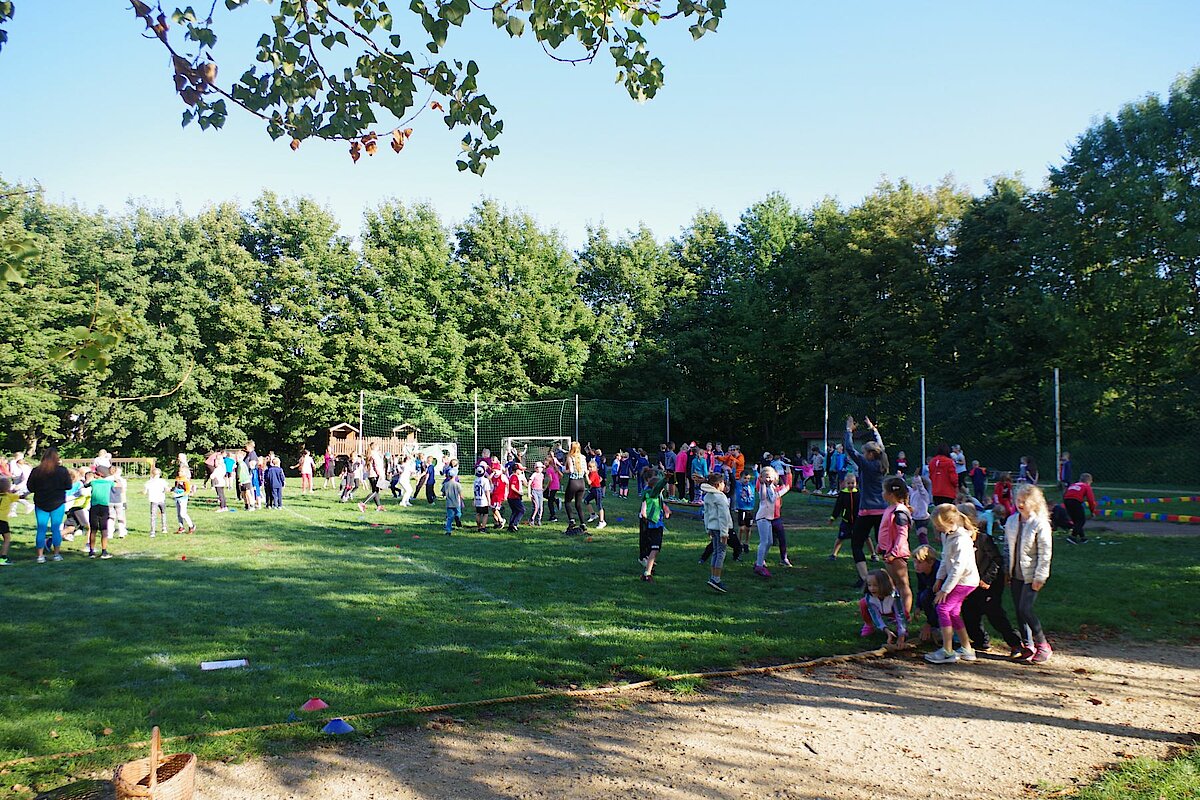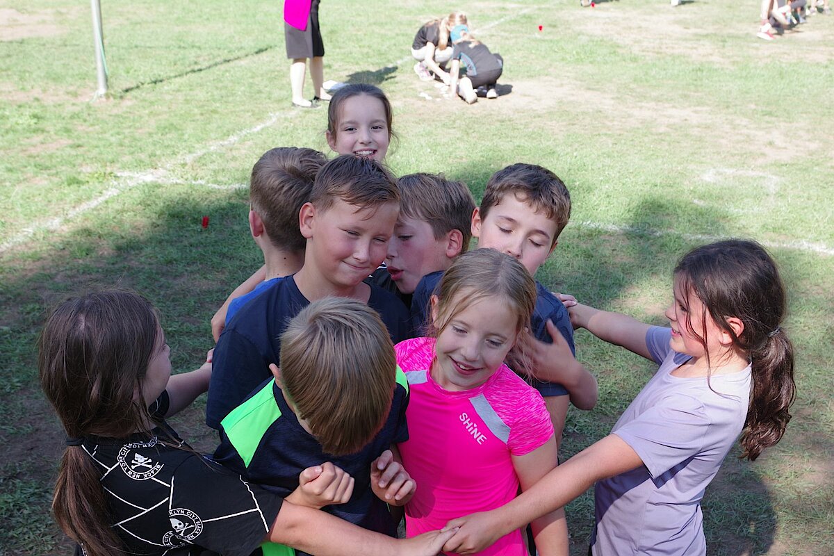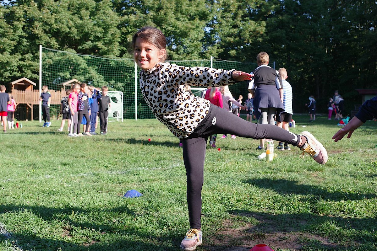 Am letzten Tag der Eingewöhnungswoche war es wieder soweit: der traditionelle „Spiel und Spaß auf dem Schulhof“ stand auf dem Programm. Bei schönstem Wetter versammelten sich alle Kinder und das ganze Schulteam vor der Schule, um mit der Erwärmung in den Tag zu starten. Danach ging es für die Sportler:innen an insgesamt 16 Stationen.