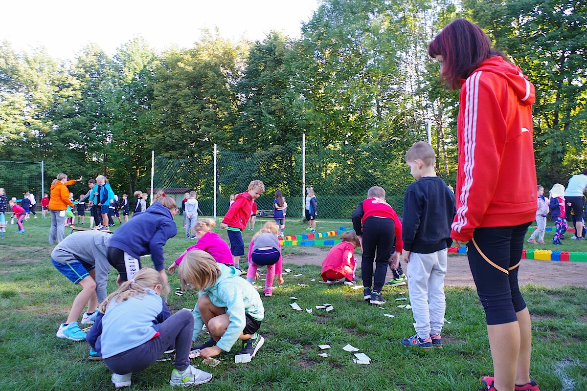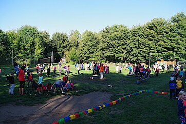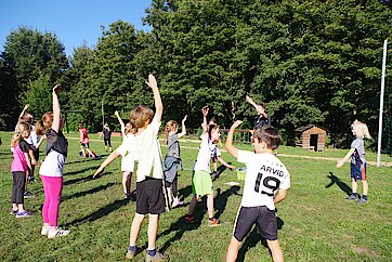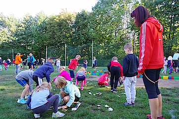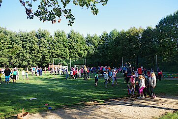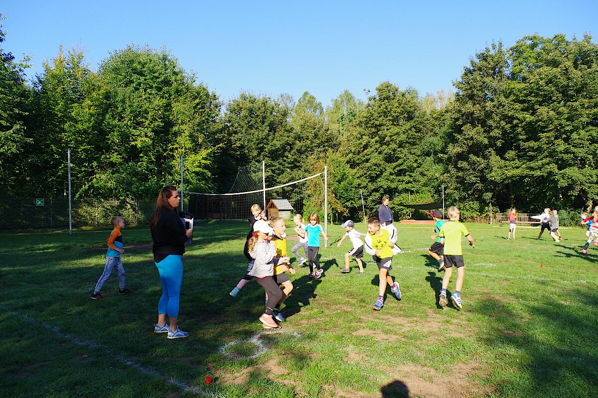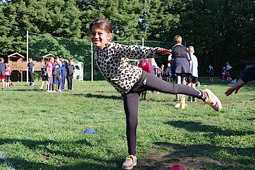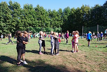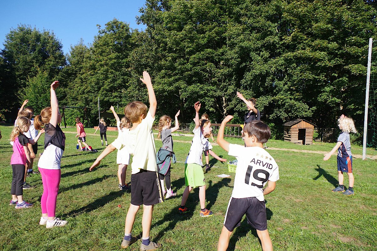Am letzten Tag der Eingewöhnungswoche war es wieder soweit: der traditionelle „Spiel und Spaß auf dem Schulhof“ stand auf dem Programm. Bei schönstem Wetter versammelten sich alle Kinder und das ganze Schulteam vor der Schule, um mit der Erwärmung in den Tag zu starten. Danach ging es für die Sportler:innen an insgesamt 16 Stationen.