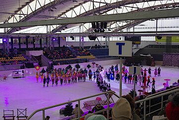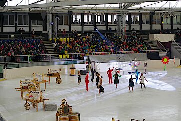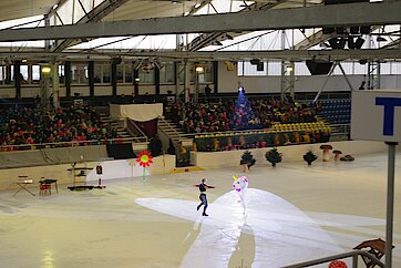 Dick eingepackt und mit warmen Getränken ausgestattet, nahmen wir unsere Plätze auf der Tribüne ein. Besonders neugierig waren wir auf eine unserer Mitschülerinnen aus der Klasse 4a, die mit den anderen Eissportlern und Eissportlerinnen auf der großen Bühne des Eissportzentrums Chemnitz stand und dort im Dezember viele Auftritte bewältigen durfte. Wir staunten über die schönen Kostüme und bewunderten, wie unglaublich gut sogar schon die kleinen Mitwirkenden Schlittschuh laufen können. Auch die andere Art, ein Märchen erzählt zu bekommen, faszinierte uns. Das tapfere Schneiderlein bekam natürlich die Prinzessin und am Ende des Märchens gab es viel Applaus für die kleinen und großen Eiskunstläufer und -läuferinnen.