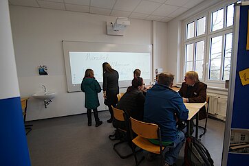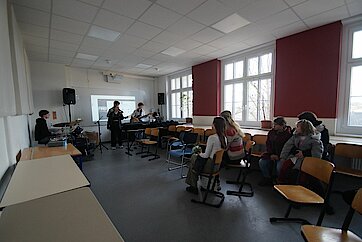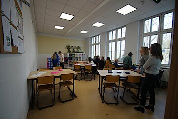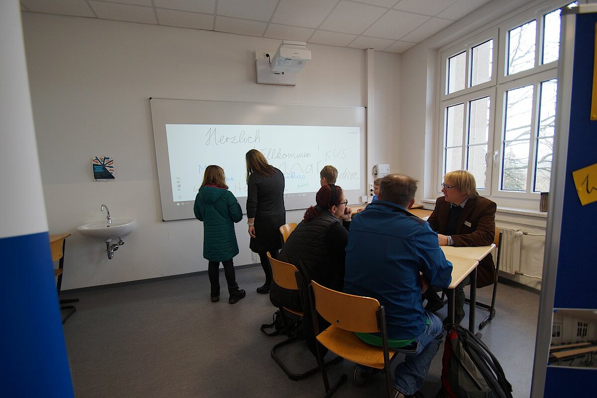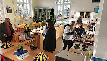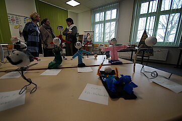 Pünktlich ab 10 Uhr stand die Haupteingangstür nicht mehr still. Die Gäste freuten sich nach zwei Jahren Pause endlich wieder persönlich zum Tag der offenen Tür vorbeizukommen. In den letzten beiden Jahren war dies leider nur online möglich. Eltern, Großeltern, Schüler unserer Schule und die, die es einmal werden möchten, waren gekommen, um uns und unsere Schule mit all ihren Facetten und Möglichkeiten kennenzulernen. Mit dem Programmheft in der Hand ging es durch die Etagen des Schulgebäudes. In jedem Raum war etwas los. In der Chemie und Biologie konnten die Kinder experimentieren, an unserem Informationspunkt begrüßten Schulleitung und Förderverein die Gäste und beantworteten alle offenen Fragen und im Spielzimmer gab es für die Kinder viel zu entdecken. Um den Weg in die Jugendkunstschule zu verkürzen, wurde eine Live-Übertragung eingerichtet, bei der die Besucher die Auftritte der Band- und Bläserklassen live über unsere Leinwand hören und sehen konnten. Die 10. Klasse ließ keinen hungrig zurück. Bei Kaffee und Kuchen sowie Steaks und Roster konnte man sich stärken. Zufrieden und mit Luftballons und Informationsmaterial in den Händen, gingen die Gäste nach Hause. Wir freuen uns auf unser kommendes Highlight am 03. Juni zum Jubiläumsfest der Jugendkunstschule.