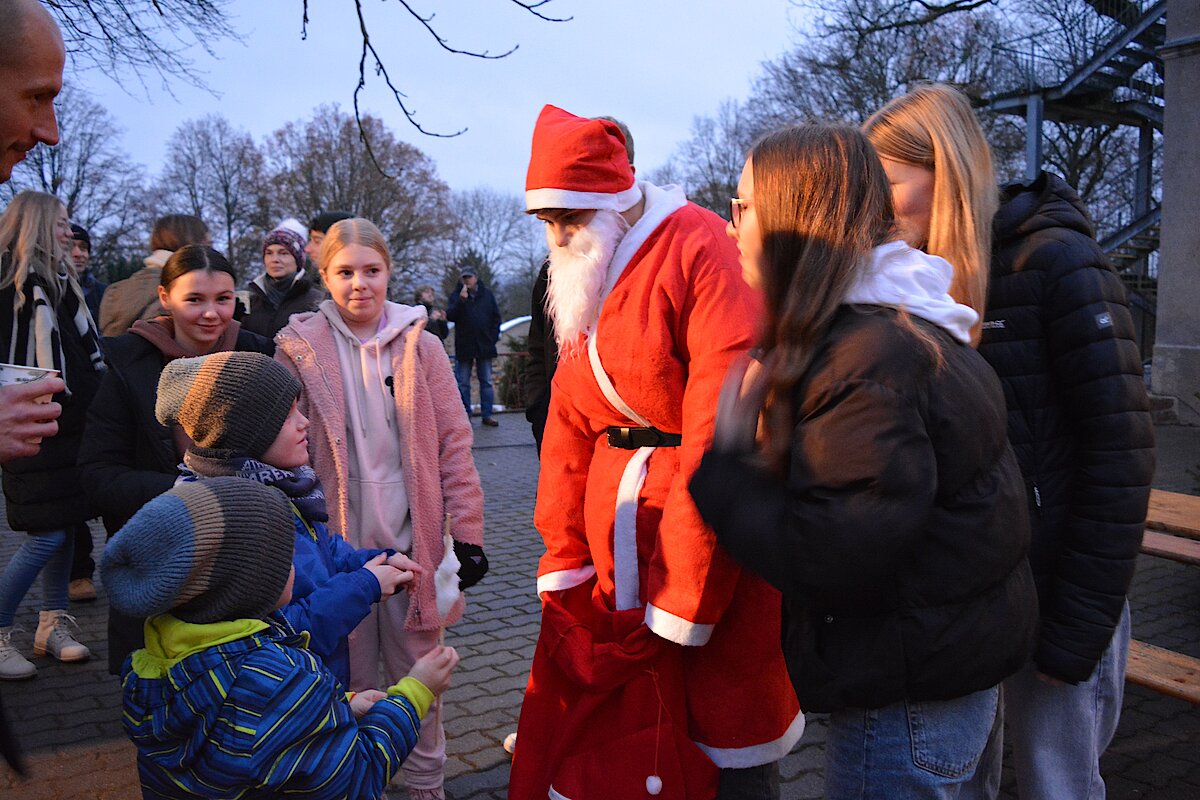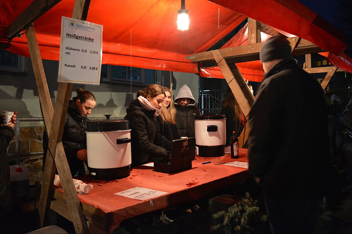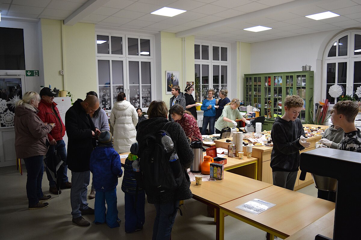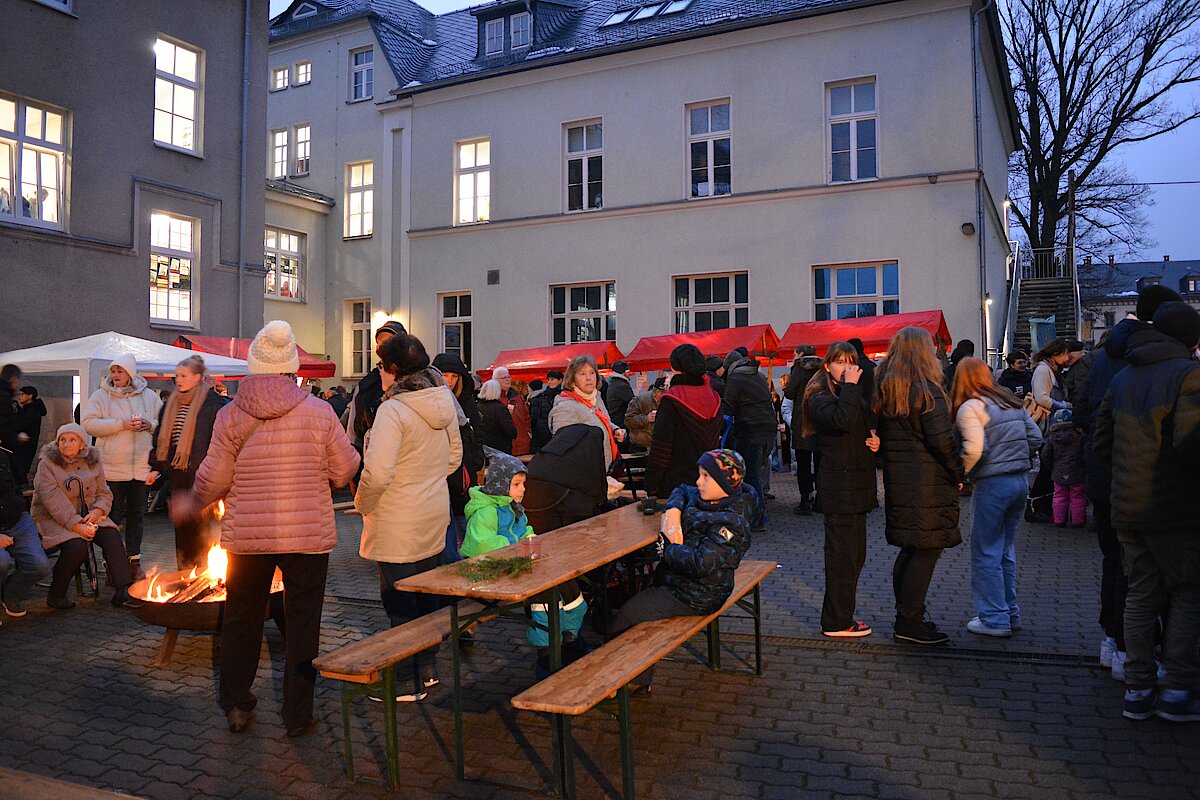 Zur jährlichen Tradition gehört der Weihnachtsmarkt an unserer Oberschule Waldenburg. Mit viel Liebe und Engagement wurde in den letzten Tagen vorbereitet, eingekauft und aufgebaut. Im Schulhaus konnte fleißig gebastelt werden. Neben Weihnachtssternen und Karten wurden tolle Windlichter kreiert. In der Küche gab es leckeren Kuchen und süße Waffeln. In der Aula wurde wieder fleißig musiziert. Unsere Jugendkunstschule präsentierte Weihnachtslieder unter anderem auf der Trompete, der Querflöte und am Schlagzeug. Ein großer Dank gilt hierbei Frau Rönisch-Bräuer und den Kids, die fleißig geübt und sich der vollen Aula präsentierten. Auf dem Außengelände roch es nach Glühwein, Roster und Popcorn. Die Klassen 7 drehten eifrig die Kartoffel und verkauften leckere Kartoffeltornados. Die 8-Klässler kochten Kartoffelsuppe und Chili con carne und verkauften an ihrem Stand die frischen Suppen. Am Lagerfeuer konnte sich gewärmt werden und wer gut aufgepasst hat, konnte schon den Weihnachtsmann sehen, der einen vollen Sack mit vielen Süßigkeiten dabei hatte.