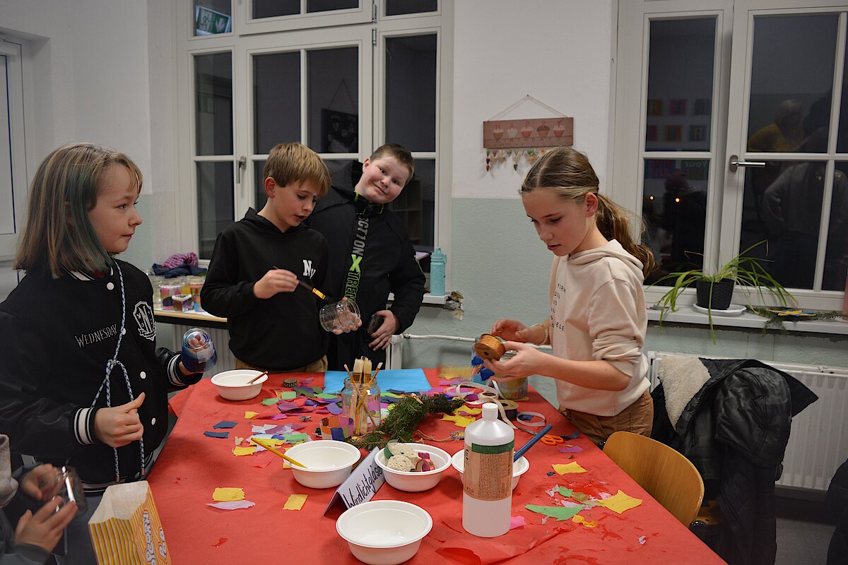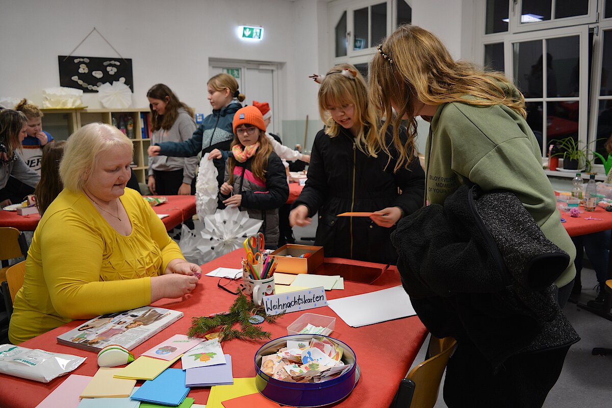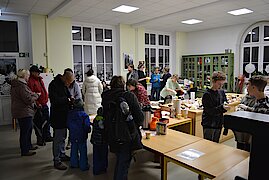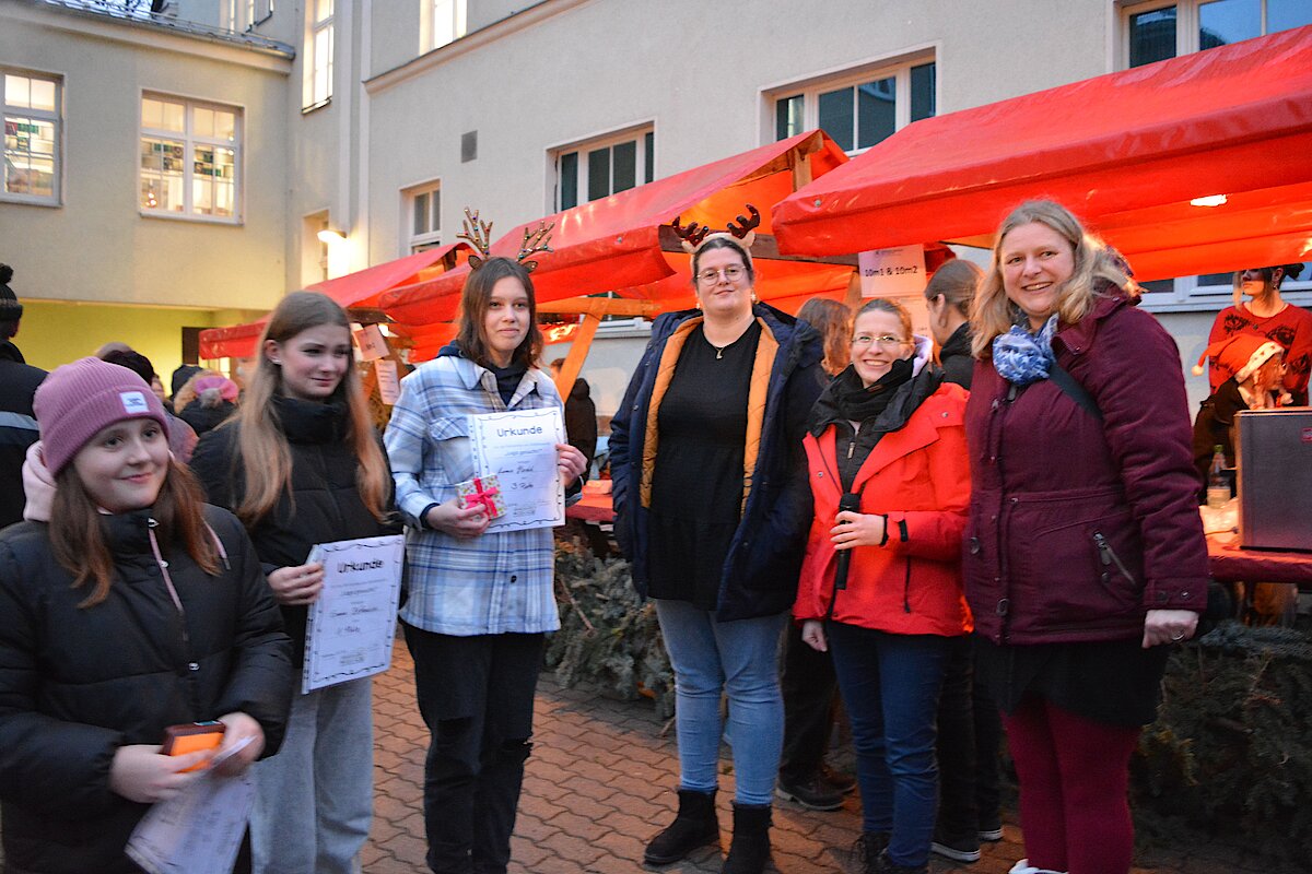 Zur jährlichen Tradition gehört der Weihnachtsmarkt an unserer Oberschule Waldenburg. Mit viel Liebe und Engagement wurde in den letzten Tagen vorbereitet, eingekauft und aufgebaut. Im Schulhaus konnte fleißig gebastelt werden. Neben Weihnachtssternen und Karten wurden tolle Windlichter kreiert. In der Küche gab es leckeren Kuchen und süße Waffeln. In der Aula wurde wieder fleißig musiziert. Unsere Jugendkunstschule präsentierte Weihnachtslieder unter anderem auf der Trompete, der Querflöte und am Schlagzeug. Ein großer Dank gilt hierbei Frau Rönisch-Bräuer und den Kids, die fleißig geübt und sich der vollen Aula präsentierten. Auf dem Außengelände roch es nach Glühwein, Roster und Popcorn. Die Klassen 7 drehten eifrig die Kartoffel und verkauften leckere Kartoffeltornados. Die 8-Klässler kochten Kartoffelsuppe und Chili con carne und verkauften an ihrem Stand die frischen Suppen. Am Lagerfeuer konnte sich gewärmt werden und wer gut aufgepasst hat, konnte schon den Weihnachtsmann sehen, der einen vollen Sack mit vielen Süßigkeiten dabei hatte.