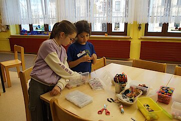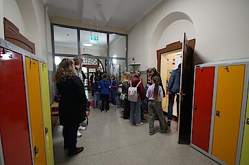 Alle Gäste, die unsere Schule kennenlernen wollten, wurden von den Schülersprecherinnen und Schülersprechern begrüßt und von ihnen durch das Schulhaus geführt. Die kleinen Besucher und Besucherinnen durften sich sogar ein Begrüßungsgeschenk aussuchen und konnten sich beim Förderverein an kleinen Basteleien üben.