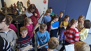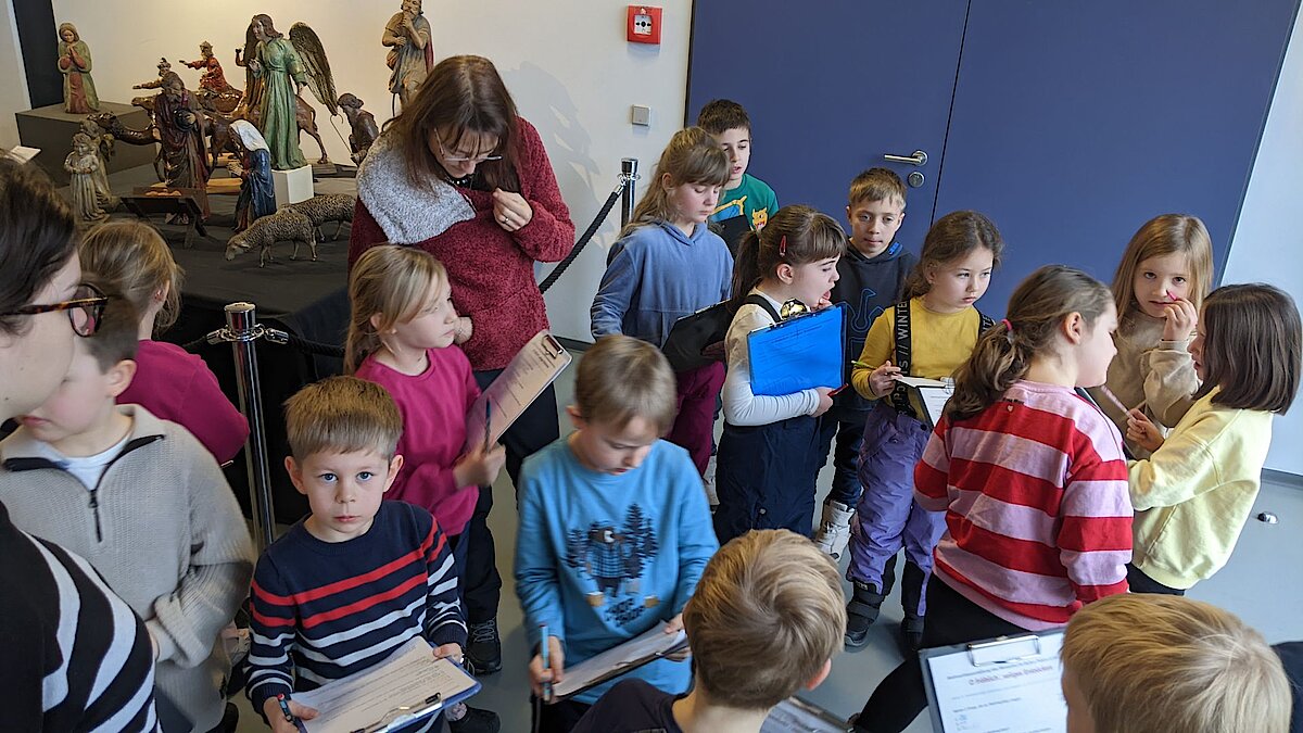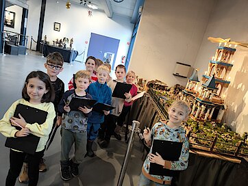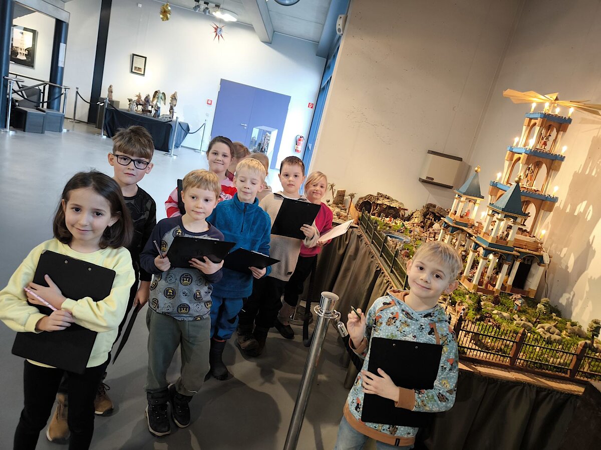 Die Weihnachtsausstellung des Stadtmuseums im Kultur.Palais.Lichtenstein zu besuchen, war eine super Idee für unseren Winterwandertag am 15. Januar 2025. Dass allerdings fünf Klassen zur gleichen Zeit vor Ort sein würden, hat bis einige Tage vor dem Termin keiner geahnt und es erforderte kurzfristig von den Mitarbeitern und Mitarbeiterinnen des Palais einiges an Organisation. Sie haben es geschafft, diesen Vormittag, trotz der vielen Kinder, zu einem interessanten Besuch für alle werden zu lassen. Vielen Dank noch einmal dafür.