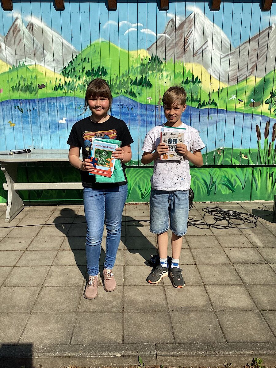 Besonders hervorheben möchten wir die Leistungen von Ava aus der Klasse 4, die die meisten Aufgaben hintereinander richtig lösen konnte und damit den „längsten Känguru-Sprung“ erreicht hat. Zudem durfte Ava auch einen 2. Preis in der Klassenstufe 4 mit nach Hause nehmen. In Klasse 3 war Luke L. mit dem Erreichen eines 3. Preises erfolgreich.
