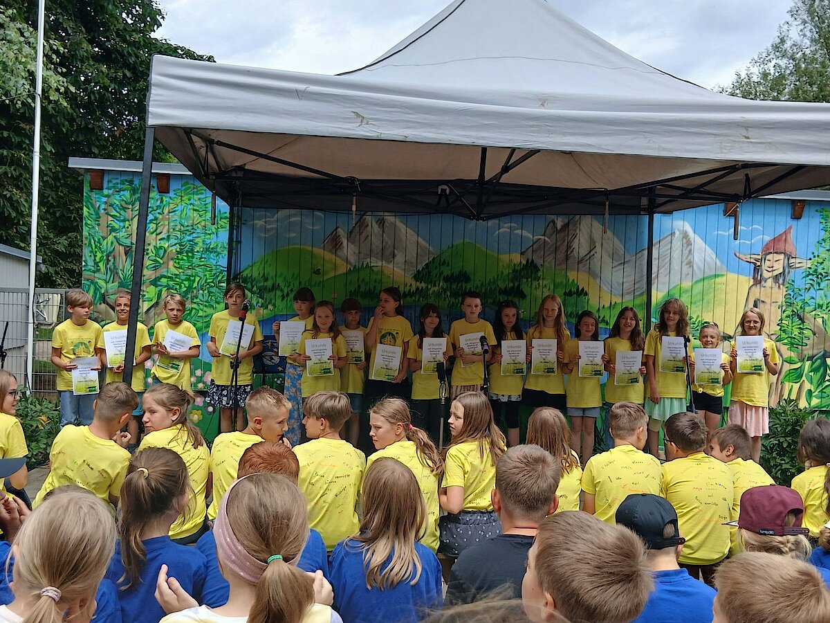 Zum Gedenken an die vergangenen vier Grundschuljahre erhielten die Kinder der Klassenstufe 4 Urkunden, die für den erfolgreichen Abschluss der Grundschulzeit stehen und sie hoffentlich lange an uns erinnern werden.